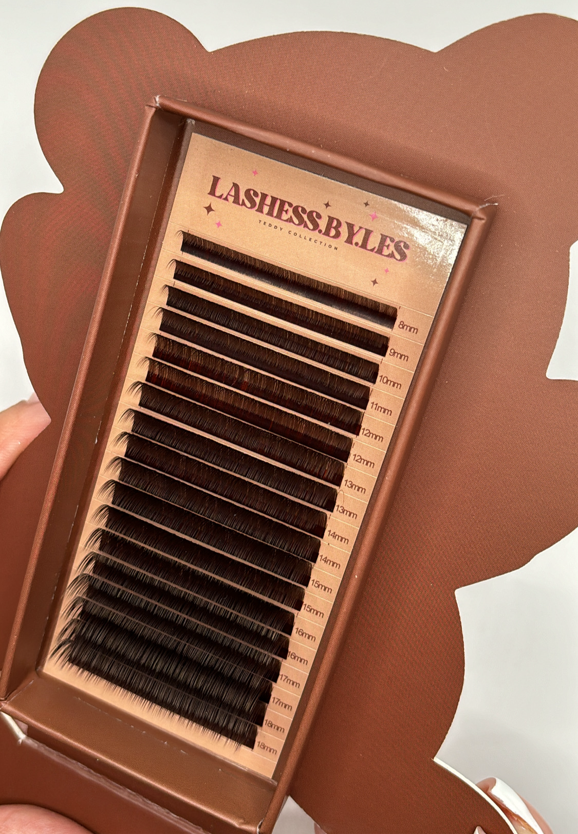 Featuring brown lashes in a mix of lengths, each lash is soft and easy to fan, making application a breeze. Boost your lash game with this adorable tray. 🧸